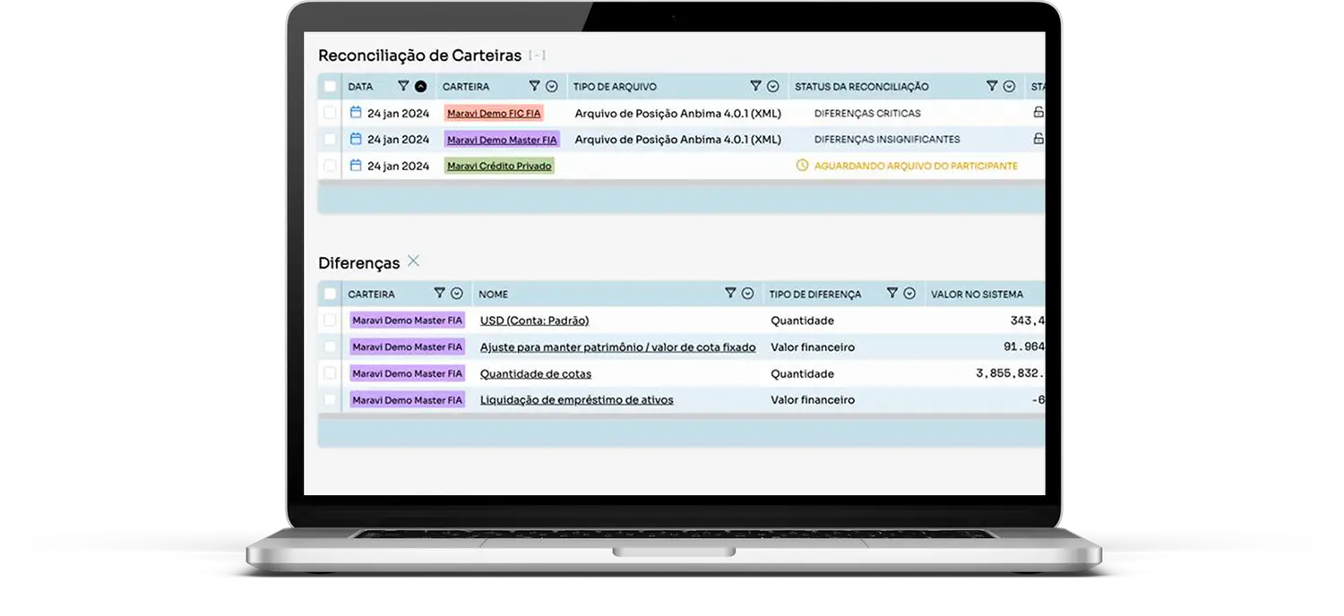 Controle maior da carteira dos fundos, com atualizações em tempo real nos permite ganhar mais eficiência operacional, facilidade maior na conciliação de posições, passivo e controle de todas as operações.