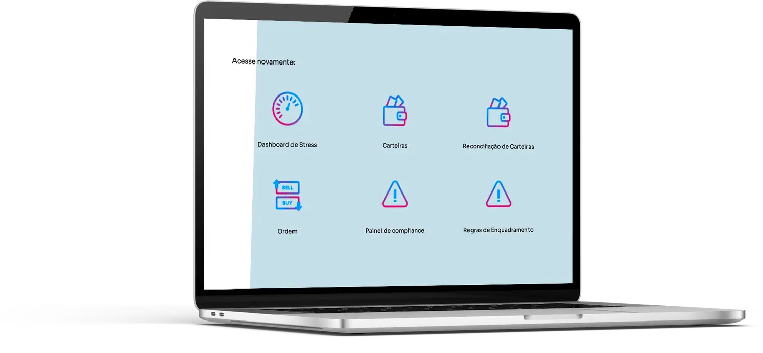 Conecte todas as áreas da gestora com a nossa integração front-to-back completa. Tenha uma visão unificada e transparente de toda sua operação, do back-office ao gestor, passando por trading, compliance e risco. Você encontra tudo aqui.